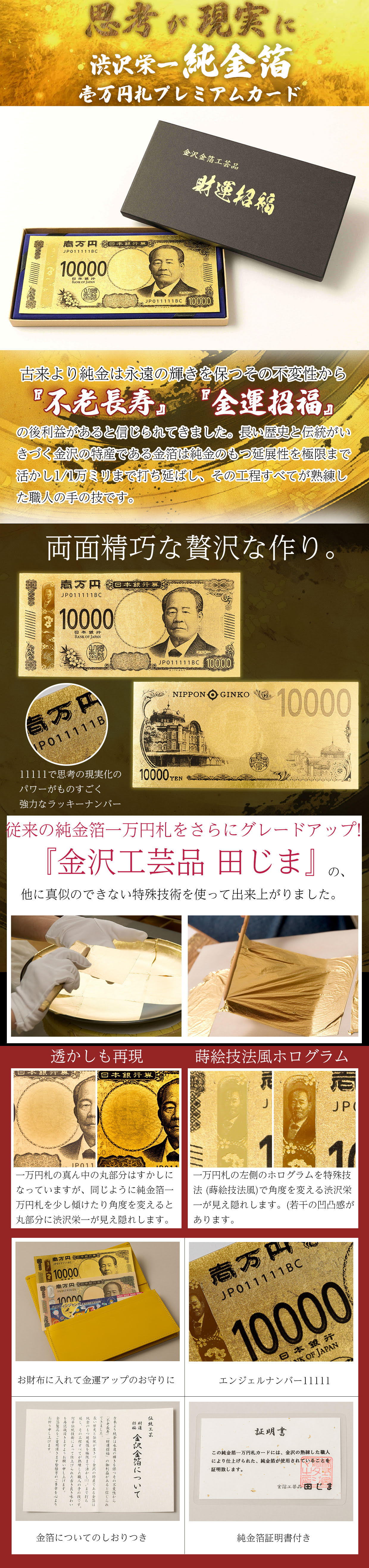 商品特徴 財運強化・金運アップのお守りに・・・本物の金の輝き!純金箔1万円札が新しくなりました!